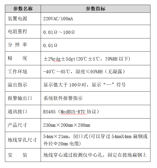 產品具有在線測量、非接觸測量、地線穿心通過、不影響防雷接地效果和設施的正常運行,無需自檢、實時檢測、采用RS485有線通信。檢測儀內置傳感器與電路板防雨防塵,確保野外、礦井下、室內等長時間在線監測的高精度、高穩定性、高可靠性。